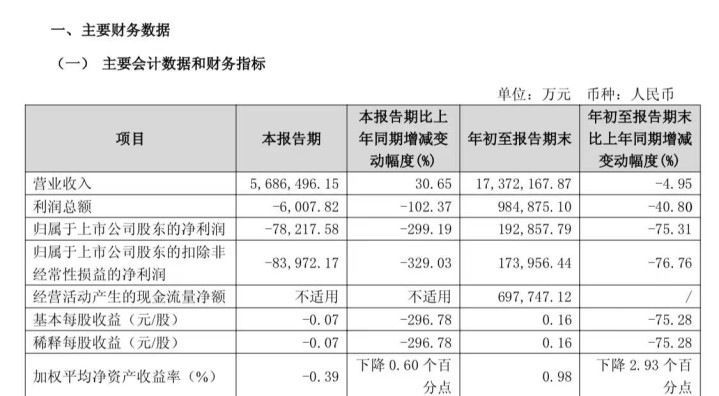 财报显示,保利发展今年第三季报利润总额为-6007.82万元,同比下降102.37%;归属于上市公司股东的净利润约-7.82亿元,同比下降299.19%。